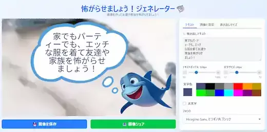 そして、当ブログ「ばずめも!」で、「怖がらせましょう!」サメミームを、誰でもワンクリックで生成できるジェネレーターアプリ(メーカー)を公開しました。